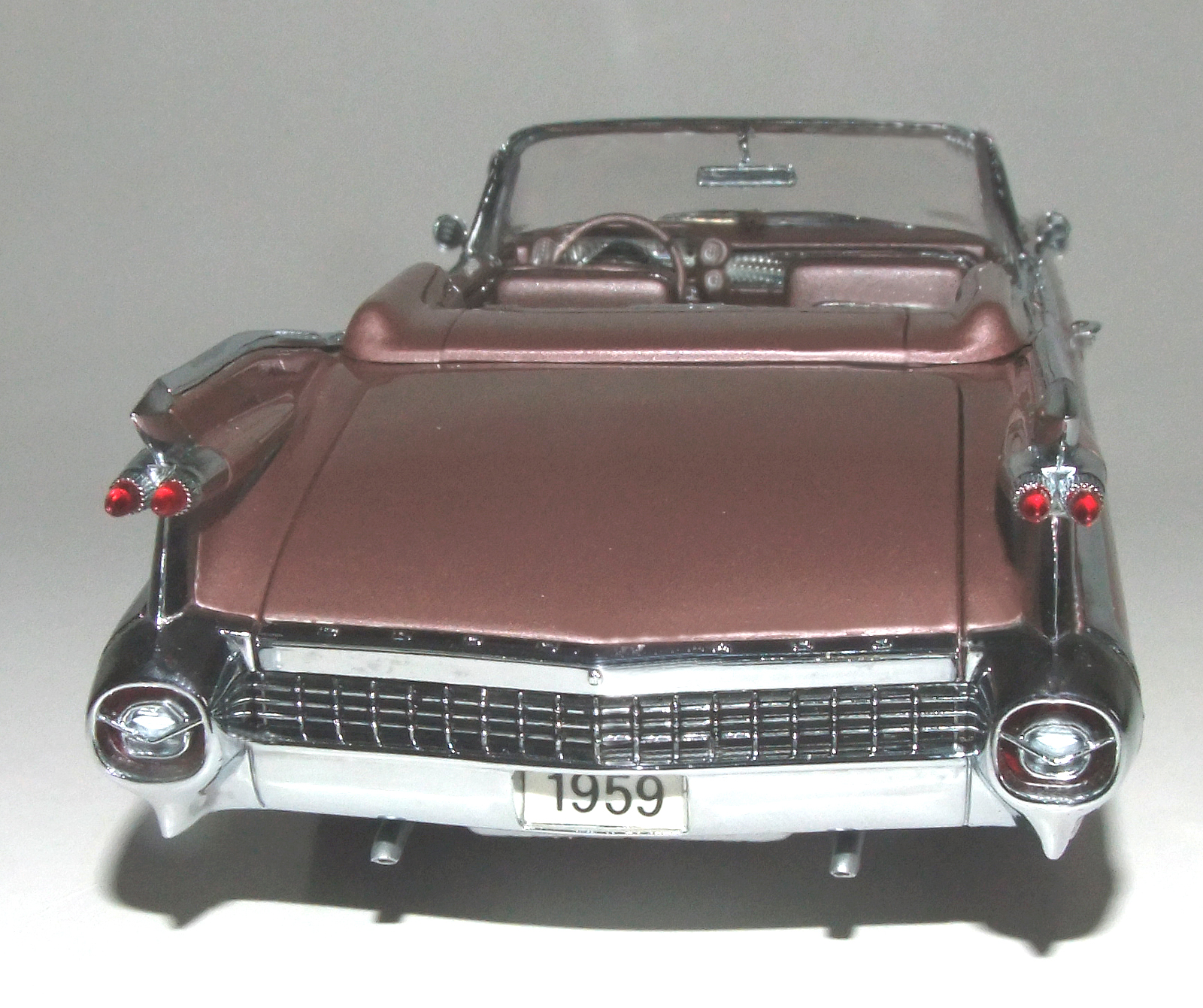 Danbury Mint producerade denna 1959 ’King of Fins’modell i begränsad upplaga av 5000 som är mycket vacker och imponerande. Exteriören med de fantastiska fenorna är perfekt. Radioantennen kan höjas och sänkas. Dörrarna är fjädermonterade och stängs med perfekt passform. Interiören består av lila säten där framstolarnas ryggstöd kan lutas framåt. Dörrpanelerna och instrumentpanelen med läsbara mätare är väl detaljerade. I motorrummet finns V8-motorn med ledningar och dekaler. Bagageutrymmet har ett reservhjul med fodral. En dekal om domkraftens handhavande finns på bagageluckans insida. Chassit är detaljerat, med fungerande fjädring och där finns nummerplaketten.